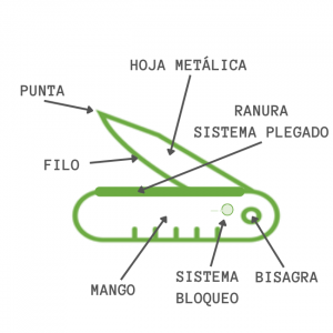 • Dos hojas de cuchillo, una grande y una pequeña, ideales para tareas generales.